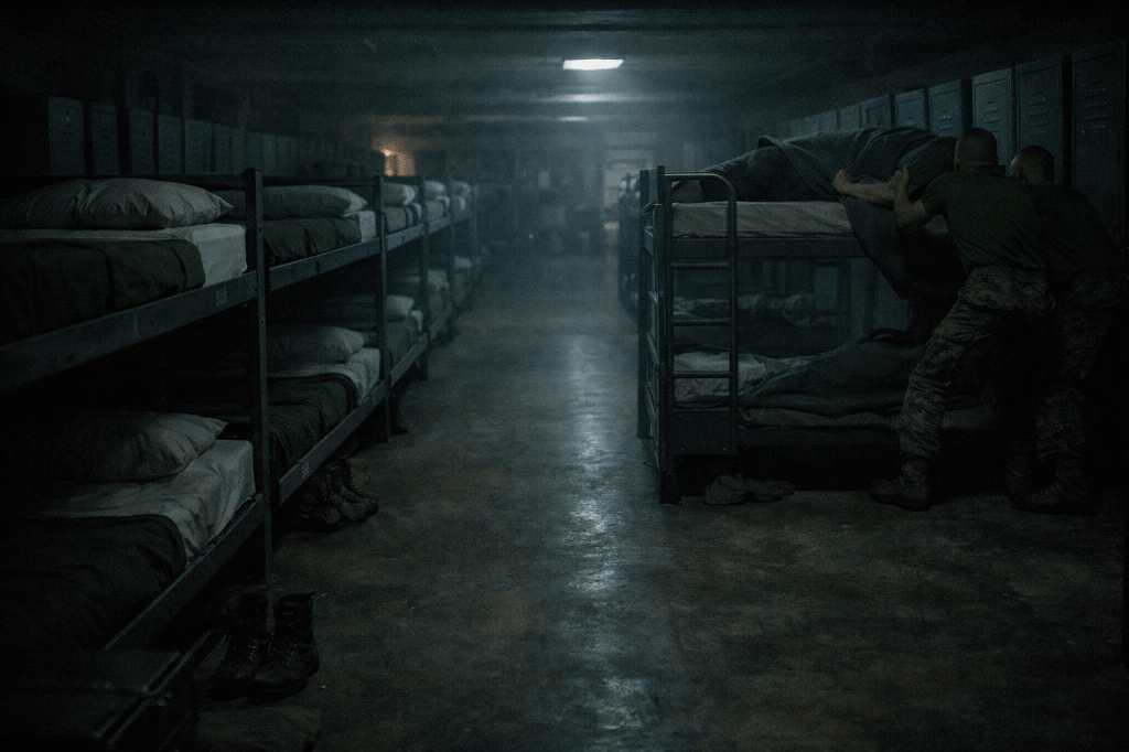 One night several other recruits got the bright idea to punish him, perhaps in the hopes that he would wash out, or that tough love would cause him to straighten up? For some it was likely just to vent their frustrations at bootcamp in general, and feel powerful if they hurt the guy. Not glorious. Not honorable. But Boot camp pushes us all to our limits, and then beyond.